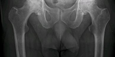 Paciente de 47 años, con artrosis bilateral de cadera. Se realizó reemplazo articular de ambas caderas en un tiempo con prótesis no cementada total